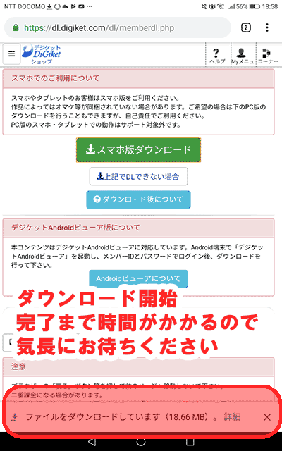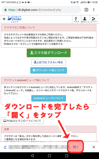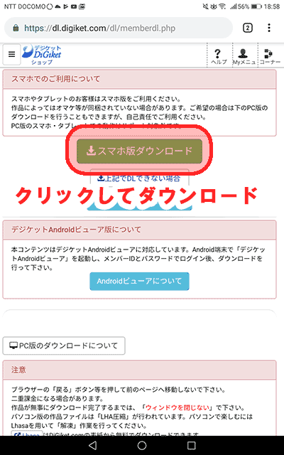 6.ご購入手続き後、「スマホ版ダウンロード」ボタンをクリック。