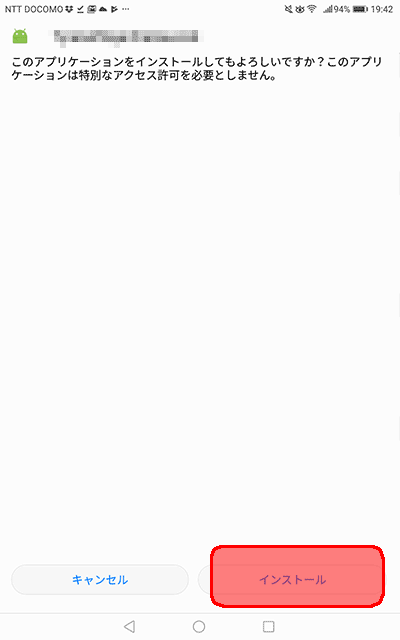 9.Androidのアプリインストールマネージャーが起動し、インストール開始確認の画面が表示されます。指示に従ってインストールを進めてください。