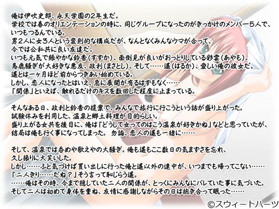 盛り上がる女共を後目に、俺は「どうして女ってのはこう温泉が好きかね」などと思っていたが、結局は俺も行く事になってしまった。