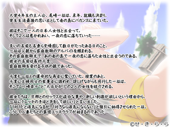 こうして人妻たちとの集団エッチクラブが始まるのであった……
