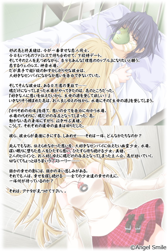 死んでもなお、伝えられなかった想いを、大好きなセンパイに伝えたい幽霊少女、水萌。深い眠りに堕ちた恋人をひたすら想い、ひたすら待ち続ける少女、美緒。