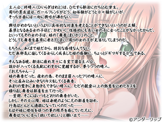 もはや妹に理性を保つの事の限界を感じていた兄に、舞香はついに自ら「抱いて欲しい」と願い出て……