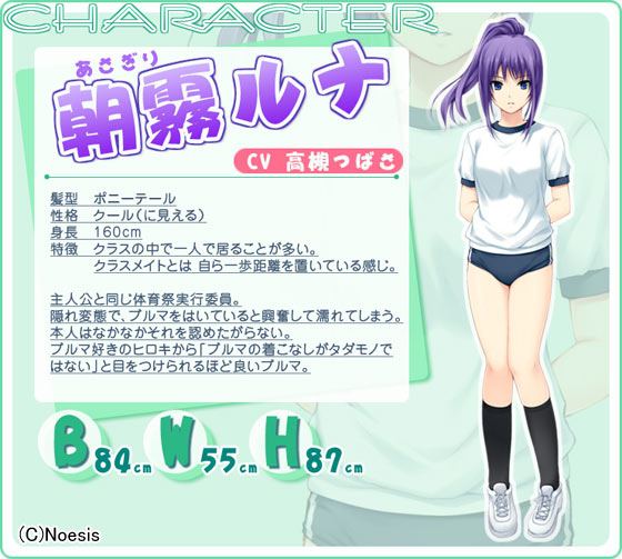 そんなヒロキには気になる女のコが二人。一人は、ブルマの着こなしがタダモノではない同じ実行委員の朝霧ルナ。もう一人は「……好きですっ!」と告白されたクラスメイトの成川サキ。