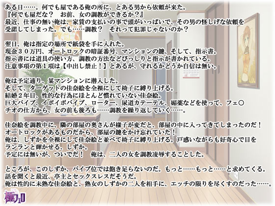 俺は性的に未熟な佳奈絵と、熟女のしずかの二人を相手に、エッチの限りを尽くすのだった……。