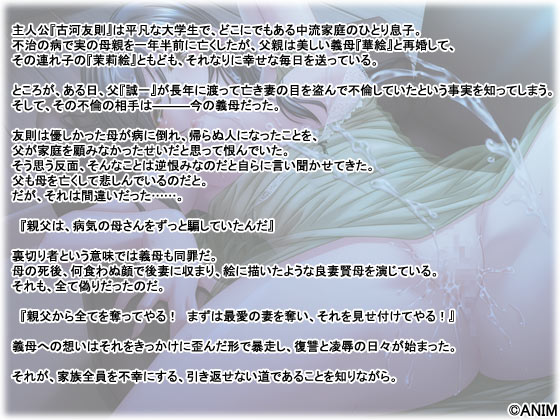 義母への想いはそれをきっかけに歪んだ形で暴走し、復讐と○○の日々が始まった。