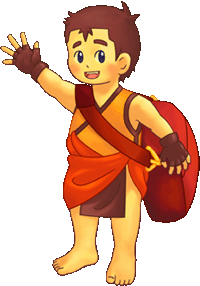 ちいさなムラで そだった主人公 (しゅじんこう)。