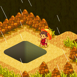 地面に大きなアナのある森。