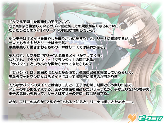 「サプル王国」を再建中の王子“シン”。もう8割ほど復活しているサプル城だが、その規模が広くなるにつれ、たったひとりのメイド“リーナ”の負担が増加している。