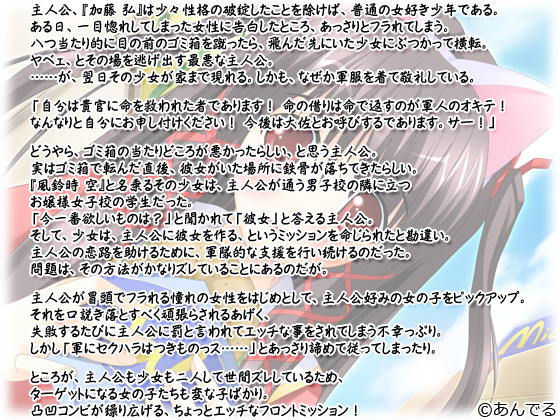 『風鈴時 空』と名乗るその少女は、主人公が通う男子校の隣に立つお嬢様女子校の学生だった。
