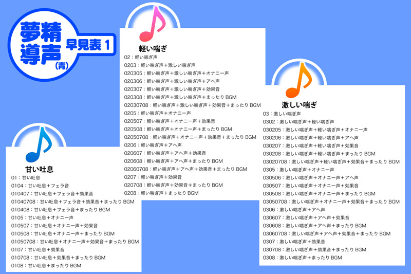 本製品には8種類のオナニーサポート音声データと、それらを組み合わせた164種類の組み合わせデータが入っております。