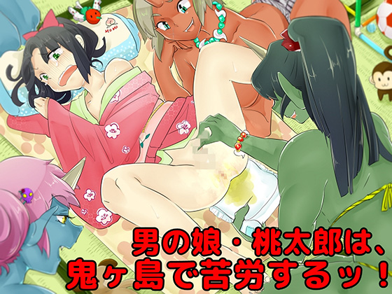 ○○的にオムツを穿かされるMシチュ&男の娘な桃太郎が鬼に奉仕するセリフ付きCG集です。