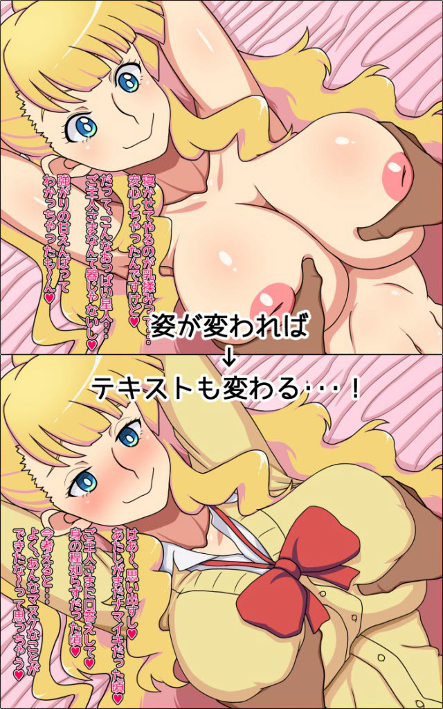 全裸、原作制服、ドスケベコスプレの衣装差分ごとに変化するテキストを駆使して、