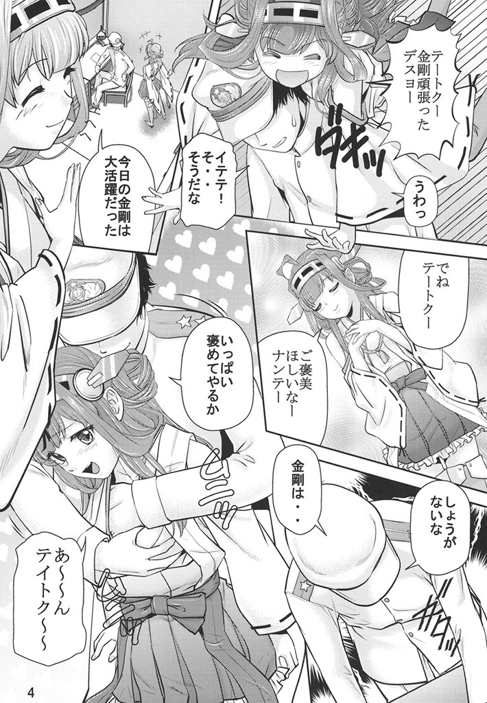 戦場で大活躍の金剛は、提督との夜戦でたっぷりとご褒美をもらうことに。
