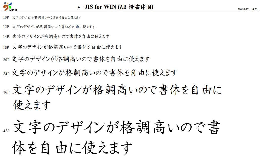 ・AR楷書体Mは、筆文字の基本、正当派の楷書体です。