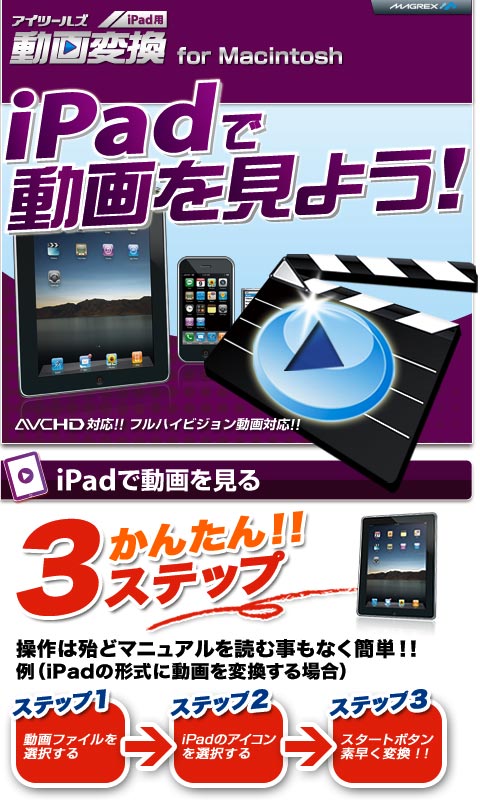 本製品は携帯電話やPSPはもちろん、iPadやiPhone4にも完全対応し、いつでも手軽に動画を閲覧することが可能です。