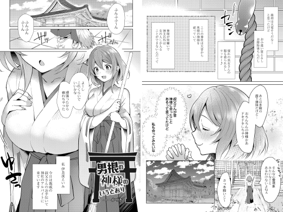 男根の神様を祀る神社でバイトをしていたヒロインのえいみだったのだが、ある日掃除中に本殿からのうめき声を聞き扉を開けたのだがそこにいたのは男根の神様だった!?