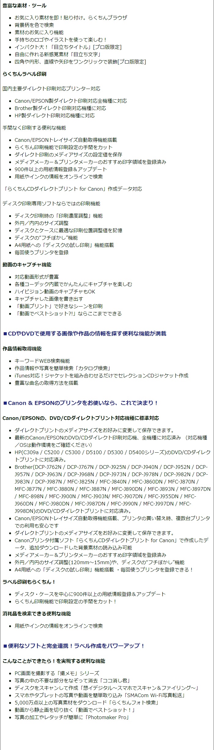 『らくちんCDラベルメーカー』は、発売以来大変多くのユーザー様にご愛顧いただいている 「元祖」BD・DVD・CDのディスクやケースを印刷できるラベルデザインソフトです。