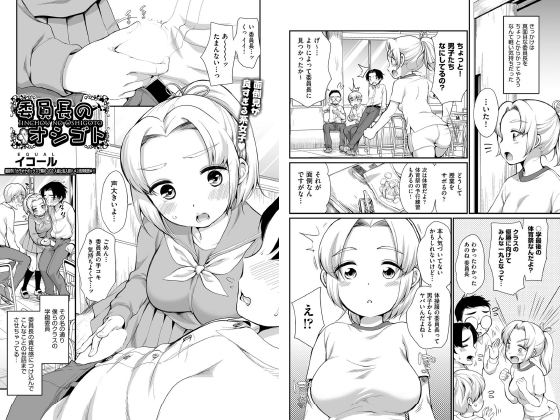 体操着から目立つたわわなおっぱいの所為で興奮を隠しきれないから抜いて欲しいというと、委員長は真に受けてお●んちんを手でしごき始めた。この事をきっかけに男子の間でウワサが広がり、クラスメイトが一人二人と増えていく。