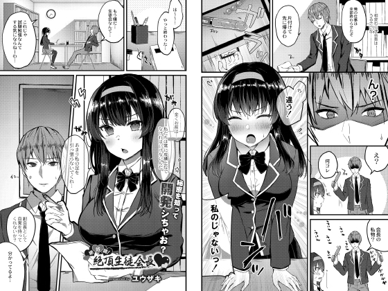 秘密を知って開発シちゃお?副会長の主人公に対して、いつものようにキツイ物言いをするヒロインの生徒会長。しかし、ひょんなことから彼女のカバンから大人のおもちゃが発見されてしまう。いつもの仕返しとばかりに主人公は…。 ユウザキが贈る生意気生徒会長のドキドキ痴態記録!