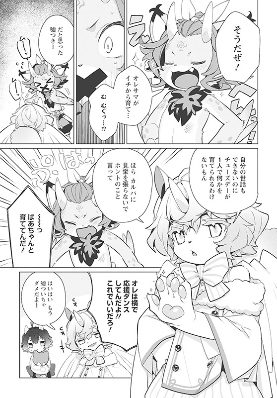 博士によって生み出された世界初の人工「キメリオ・カルパ」は特定の出自ワードを持っていない。カルパが人間とキメリオを結ぶ存在になると考えた博士は、曜日キメリオたちと一緒に外へ出て、人間の事や色々な言葉を学ぶ「感情ラーニング」をさせることにした――。 言葉から生まれた不思議な生き物たちによる、「カワイイ」だけじゃない闇甘ファンタジー!!