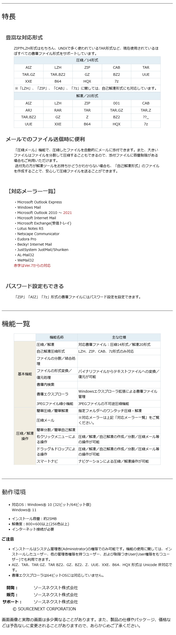 (「LZH」「ZIP」「7z」の形式のみ対応。Unicodeでエンコードされているファイルには対応していません)