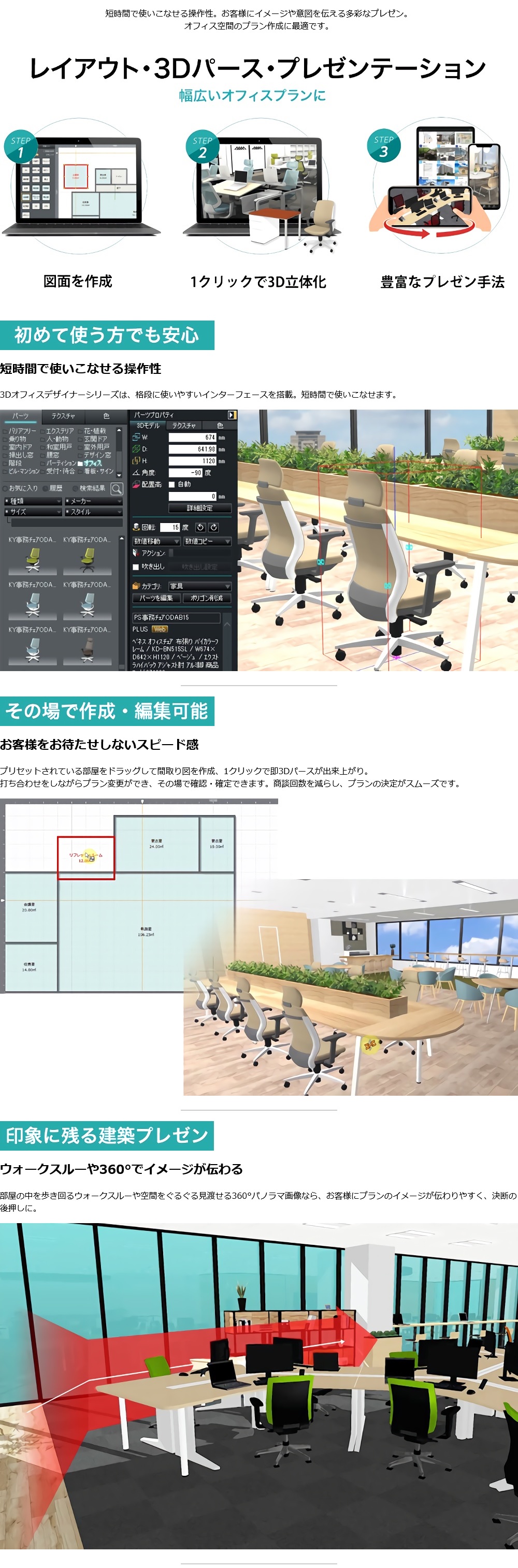 快適な操作性と多彩な表現力でオフィスレイアウトからプレゼンまで、オフィスプランをスマートに作成できる「3DオフィスデザイナーPRO10」。