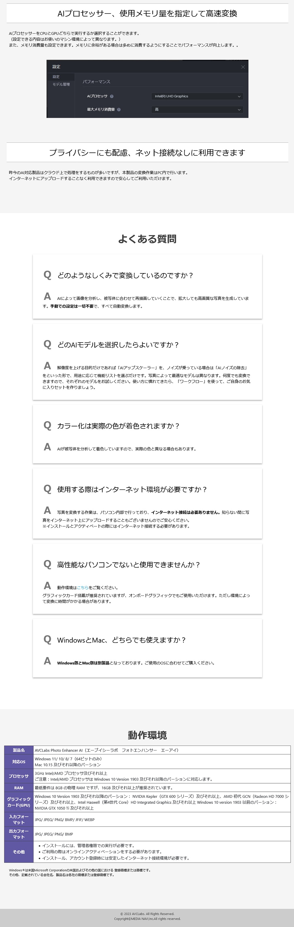 「AVCLabs Photo Enhancer AI」は、画像加工の3大人気機能を搭載した究極の画像加工ソフトです。