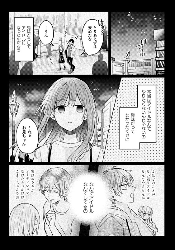 大切な人たちを次々に喪い、 責任に苛まれ失意の底でただ生きる 幼少時代のこまり。 そんな彼女に声をかけたのは、 キラキラした笑顔でアイドルになる夢を語る デビュー前のナイだった……。 こまりとナイの出会いとは!? 両片想いアイドルラブコメ第4巻!! 【収録話】 第16話〜第20話 描き下ろし漫画『ユウキの妹ってどんな子?』