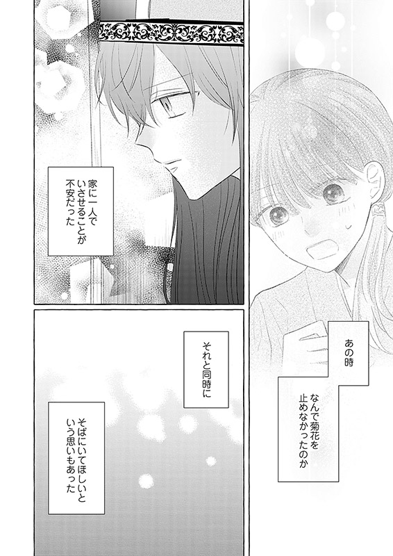 政財界の要人も通う高級料亭・花乃屋で働く菊花(きくか)は、ここの当主と愛人の子。優しくて大好きだった母親は体が弱く、早くに亡くなってしまった。そこからは義母と義妹からのいじめに耐えながら懸命に仲居として働く毎日。「何があっても人を恨まないで。ずっと笑顔でいれば大丈夫」母との約束を守る菊花。しかし義妹のいじめはエスカレートしていき、ついに夜の山奥に捨てられてしまう。絶望の中、菊花がたどり着いたのは「地獄の入り口」と町で噂されている大きな屋敷。しかしそこにいたのは美しく優しい男・焔(ほむら)だった。しかも何故か彼は菊花をすごく甘やかしてくれて――…!? 【恋するソワレ】