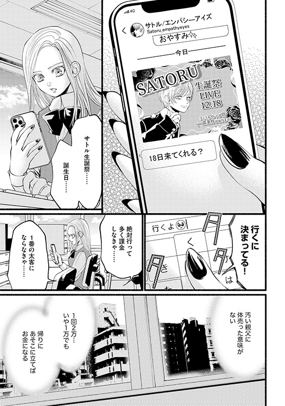 メンバーのひとり「サトル」に心を奪われ、入れ上げるように。