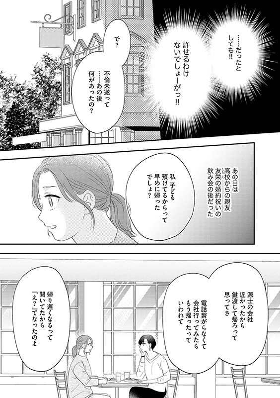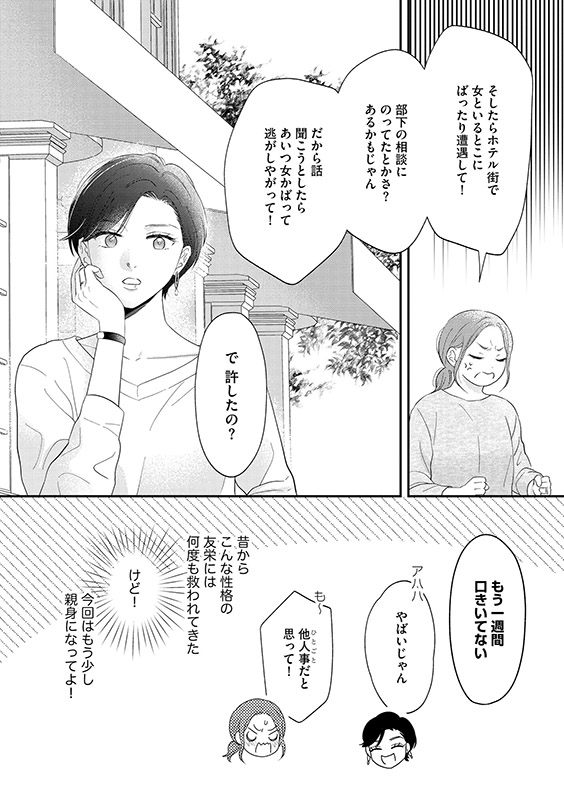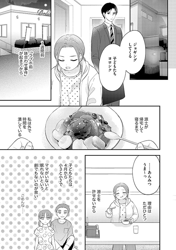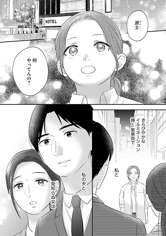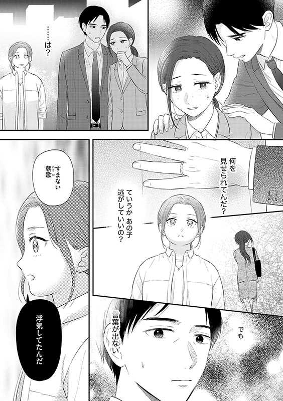 専業主婦の朝歌はある夜、自分の夫・源士と見知らぬ女がラブホ街にいるところにばったり遭遇する。