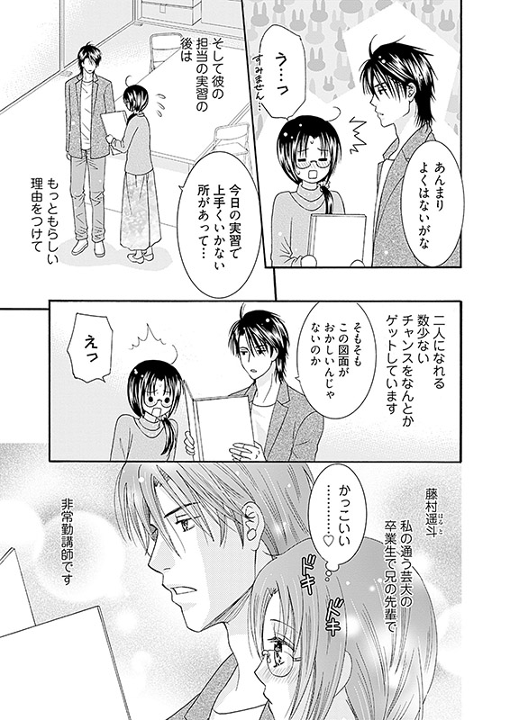 若手建築士として活躍する兄の森野樹(もりのいつき)に連れられて参加した大学OB会でであった芸大デザイン科の非常勤講師の藤村遥斗(ふじむらはると)に一目ぼれした森野花音(もりのかのん)。その先生を一途に追いかけ、とうとう芸大へ入学。先生にもっと会いたい、もっと近づきたいという想いがつのり、作品のアドバイスをもらうことにかこつけて先生の自宅へいくと、そこにはデッサンのためのヌードモデルの女性が…。「芸術のためでいちいち欲情などしない」と断言する先生の言葉を聞いた花音は「私がモデルになったら他の人は断ってくれますか?」と先生に思わず口走ってしまう!