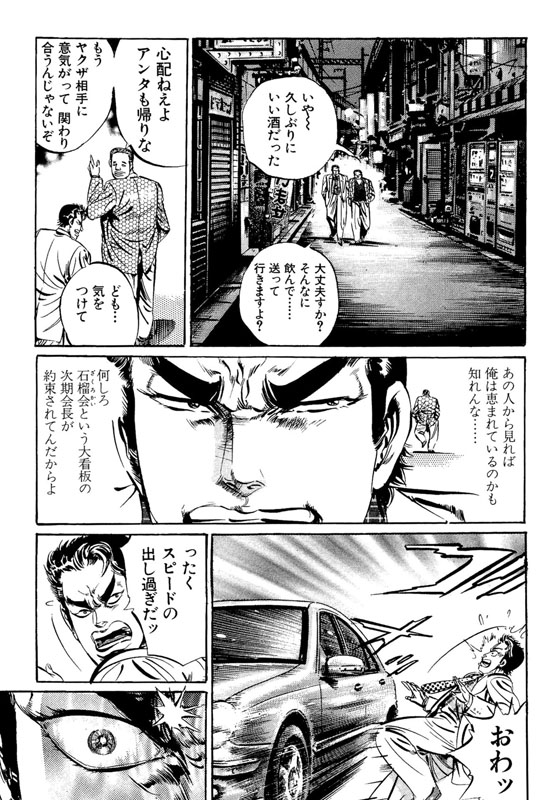 なんとこの老人は傘下団体30、構成員1000人以上を従える暴力団『関東石榴(ざくろ)会』の会長で、しかも紋次郎の実の父親・石丸次郎であった。