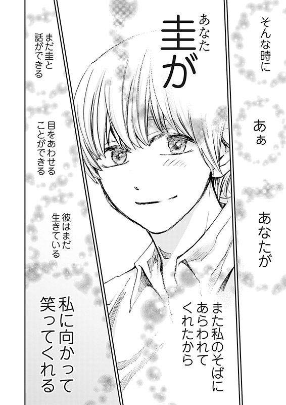 中から鍵をかけた部屋で、朝に「こんばんは」夜に「おはよう」と言葉を掛け合う奇妙な同棲生活をしているみつると圭。ふたりはごくごく普通のカップルだった。しかし半年前、とある事件によって、彼氏の圭の魂が、殺したいほど憎い男の体に乗り移ってしまった。圭とずっと一緒にいたいのに、心の奥底で恐怖を感じてしまうみつる。