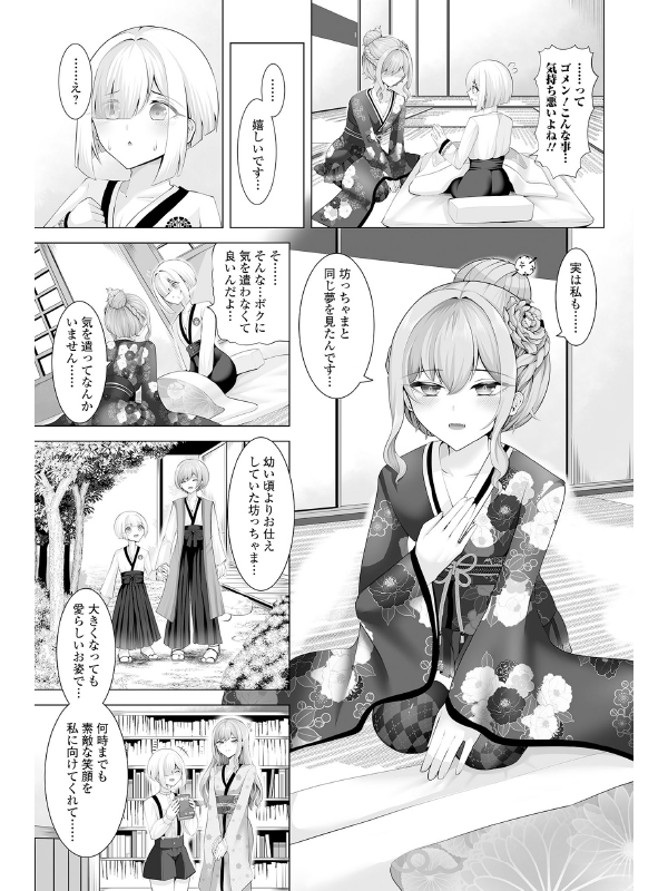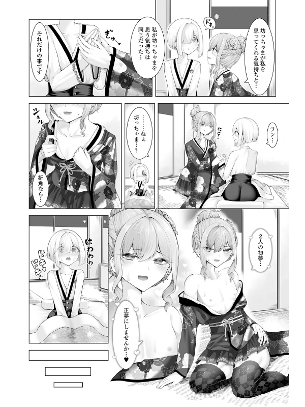 晴れ着姿で坊ちゃまに臨む男の娘、正月からうなされてる彼の姿が愛らしい。 初夢の内容は男の娘とHしているところで…ならば、初夢実現してしまいましょう! ということで、まずは帯を解くところから…!! ※この作品は「月刊Web男の娘・れくしょんッ!S vol.105」に収録された作品の単話配信です。