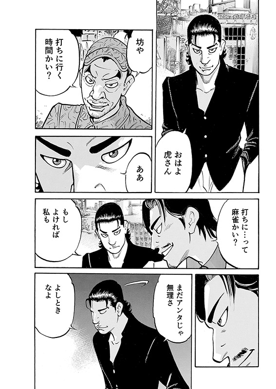 雀聖と謳われた阿佐田哲也の傑作小説『麻雀放浪記』の第3章『激闘篇』を、当代随一の麻雀劇画家の嶺岸信明が劇画化。 哲也は10代で博奕の世界に入った。凄腕の賭人であるドサ健や出目徳たちをシノギを削るうちに“坊や哲”と呼ばれるいっぱしの麻雀打ちに成長。 高度経済成長期を前に、博徒の世界は混沌の時代へ突入する――!!※第1話〜4話を収録