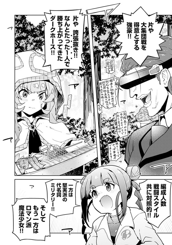 高校AR/MS競技大会2回戦、空ノ宮高校VS.皐月川高校!!統制されたミリタリーチームで優勝候補の一角である空ノ宮とたった1人の魔法少女で勝ち上がったダークホース皐月川が激突する!! 集団と個、堅実派とロマン派。勝負の行方は、いかに……!? アニメ化してほしいマンガランキング2025ノミネート作品、待望の最新巻!!