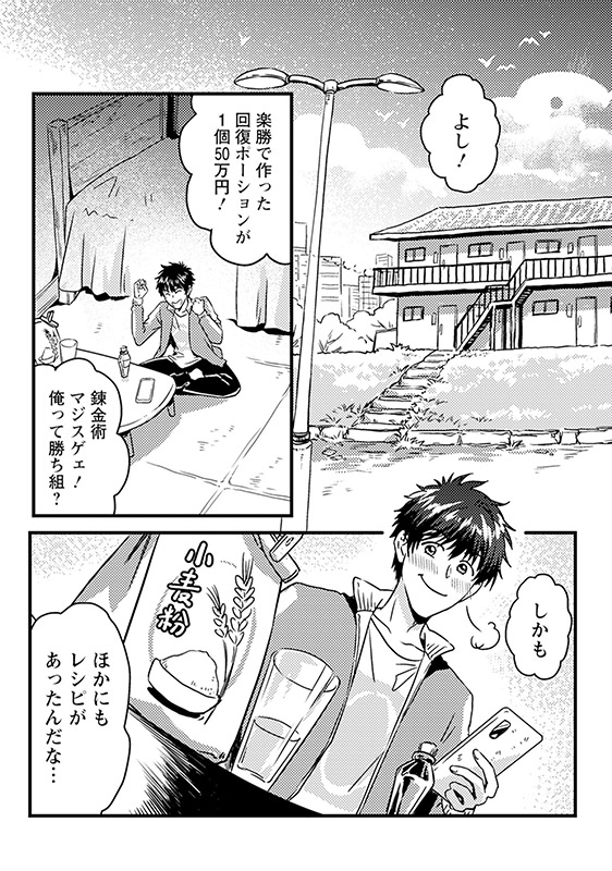 突然会社をクビになった沖田は、生活のために【冒険者】となることに。初めての冒険で【錬金術】というスキルを手に入れた瞬間から、沖田ハジメの普通の人生は黄金に輝き始める。