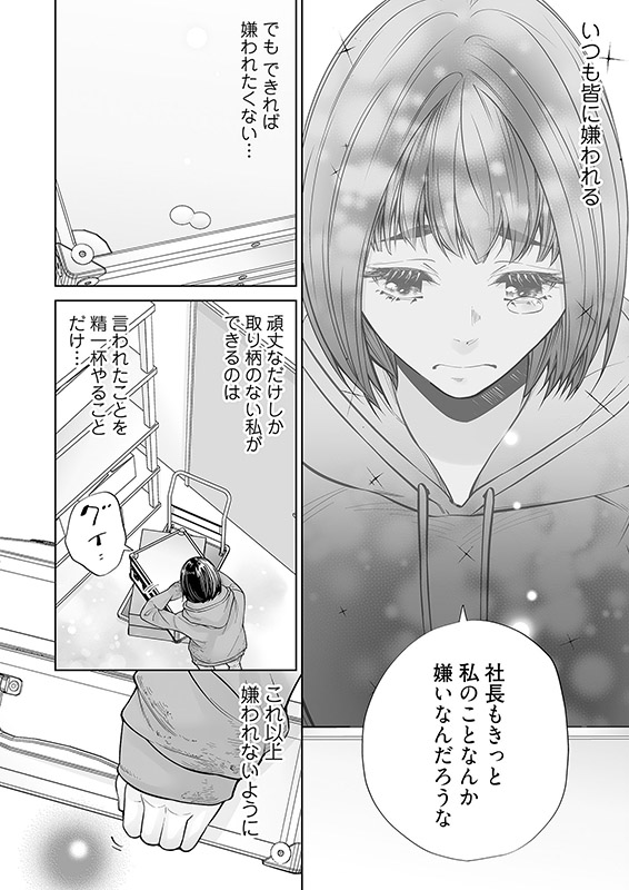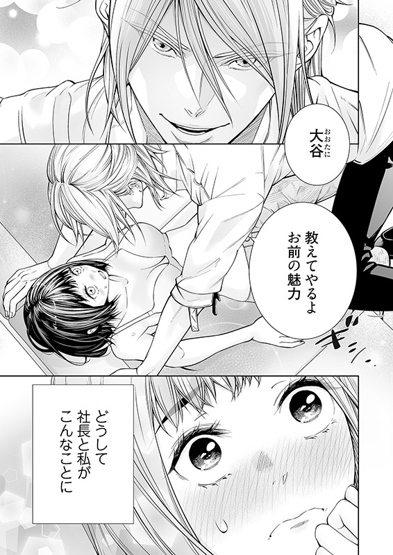 下着メーカーで働く芽依は、いつも怖い顔で睨んでくる中村社長が苦手。ある日、専属モデルから容姿をけなされた芽依を、中村社長が庇ってくれた!? 驚きと共にうっかり自分に自信がないことを告白したら「教えてやるよ、お前の魅力」と雄の顔で押し倒され――。