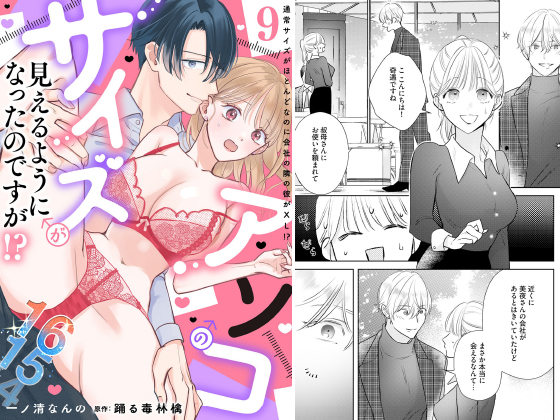 高校生のころからつき合っている彼氏と最近別れた私。結婚前に、身体の関係がなかったので迫ってみたら驚くほどの短小でした…。しかも、完全なマザコン…。それ以来、小さい人が無理になってしまった。でも男のサイズなんてホテルに行かないとわからない。酔って初めて会った娘にそんな悩みを話したらキャンディーを渡された。「これを飲めばチン長が見えるようになる」酔ってたし、全く信じてなかったけど、次の日に驚いた。ちょっと良いと思っていた小山さんが3cm…しかも細い。細さや勃起した時の大きさも見える。ちょっと課長何で、会議で勃ってるの!? しかも5cm!? そんな中、芹沢先輩は14cm…しかも通常時で太い…いやいや、私どうなっちゃうんだろー!?