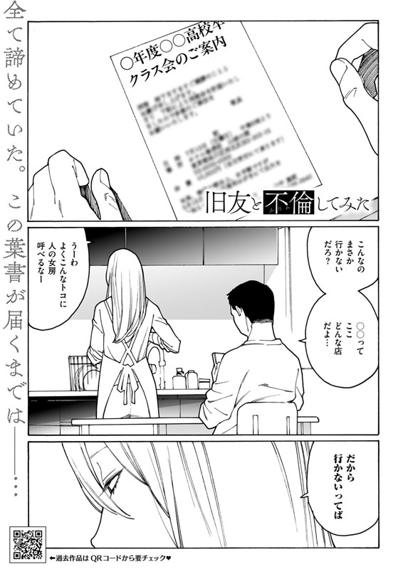 ある日、クラス会のハ○○を受け取ったあゆなはその夜、学生時代の元彼・殿田(とのだ)とセックスする夢を見る。夢の中で本当に気持ちのいい、あの頃の自分の身体を思い出したあゆなは、寝ても覚めても身体を疼かせる殿田との行為を反芻してしまう。そんな中、学生時代の親友・智花(ともか)から久々に届いたメッセージに、あゆなは”あること”を思いつき…。