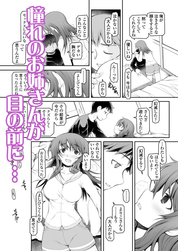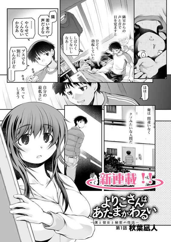 隣の部屋に住む女性は、偶然にも○○の頃の知り合いだった。よりこさん。当時の彼女は頭が良くて、クールで。…今は随分印象が変わったけど…ダメな方に。彼女の部屋で交わす世間話で、お互い底辺な大人になったものだと自嘲し。抱き合って。そしてセックスした。 かつて憧れの対象だった年上の女性と、ぎこちなく繋がった主人公の胸に浮かぶ思いは…。
