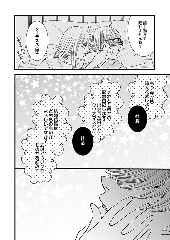 私からも社長にプロポーズしてしまった…。さすがに興奮して眠れない、と思っていたら社長の浮かれたような態度。