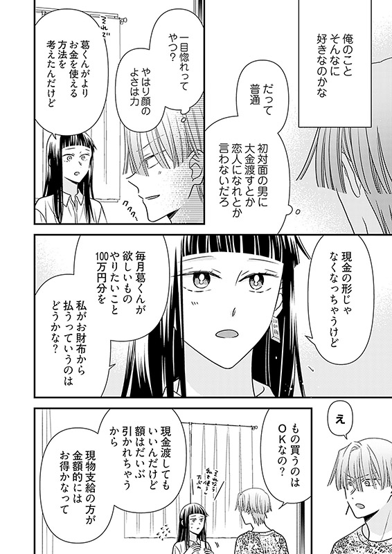 「1ヵ月100万、半年600万円の契約で私の恋人になってくれませんか?」通りすがりの地味女・真(まこと)に拾われて、半年間の恋人契約をすることに。今まで恋愛に興味がなかったという真は、金で買った男と恋愛をしてみたいと言っていて…!? クズメン×余命半年の真面目女子のラスト・ラブ!【恋するソワレ】