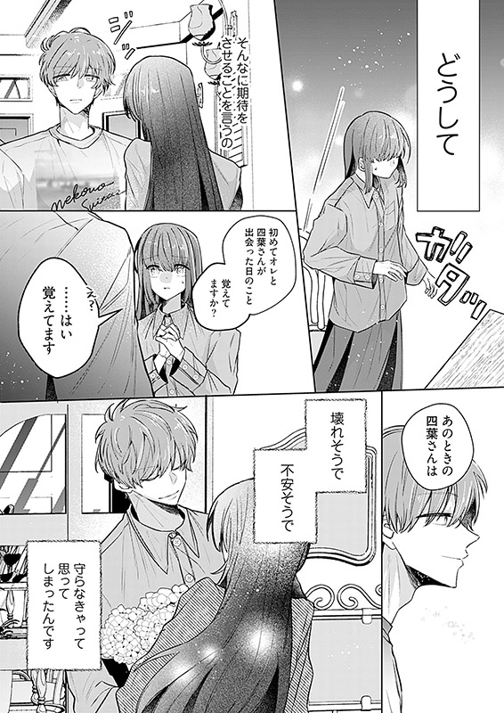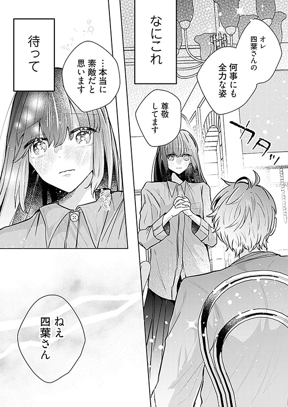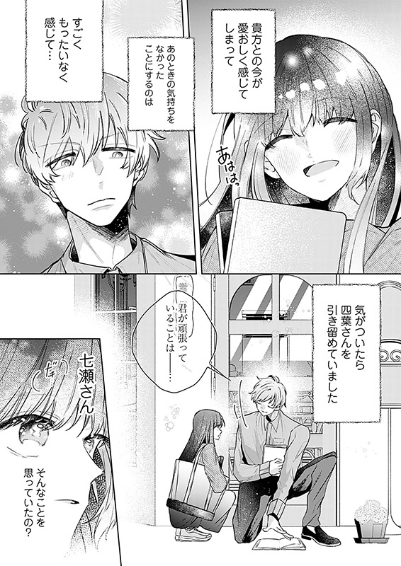 大学生の四葉は、就活がうまくいかなくて落ちこんでいたときにレトロな喫茶店を見つける。そこで出会った店員の七瀬さんは、優しくて、かっこよくて、話してると心臓がどきどきする。七瀬さんもそうだったらいいのに、と思っていたら、彼のことを親しそうに名前で呼ぶ女性が現れて…!?【恋するソワレ】