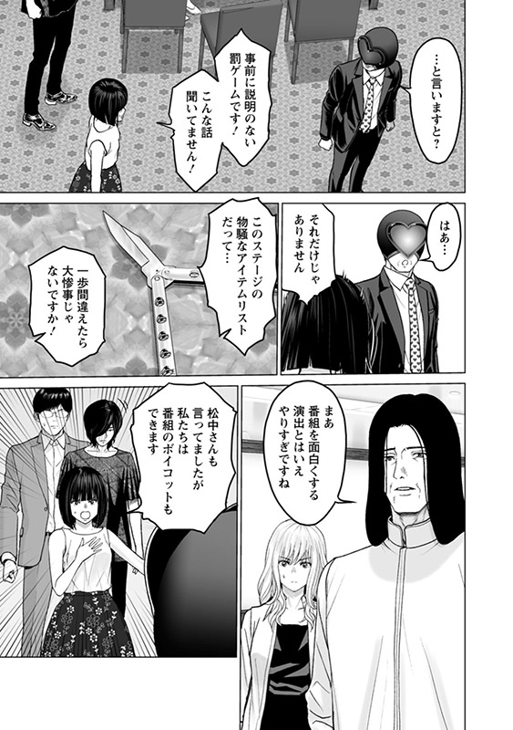 彼に対して不満を噴出させる参加者たちだが、ショーの続行に同意せざるをえない状況に皆、仕方なく追い込まれる。