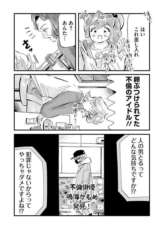 「離婚するから一緒になろう」とつきまとう彼から逃げ、まめお&かもめの二人と車で逃げる緊急事態に…。