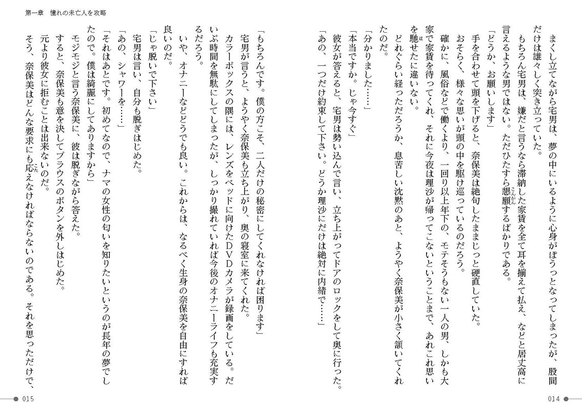 差し出された憧れの奈保美の身体を味わい、欲望を満たしていく宅男。