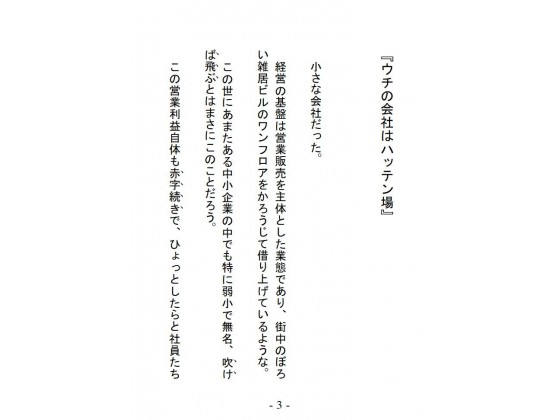 主人公の青年、新社会人の春山が入社した会社は地味な中小企業で、その経営状態を知りもしない新人はいきなり倒産の危機を目の当たりにする。